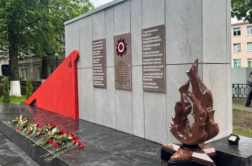 В живописном сквере в центре Бобруйска находится монумент — стена с мраморной табличкой и с красным советским знаменем, склоненным перед ней. Это памятник, установленный в честь войсковых частей и соединений, отличившихся при освобождении города от немецко-фашистских захватчиков в годы Великой Отечественной войны. Стела установлена в 1965 году. Этот памятник напоминает нам о самой жестокой войне в истории человечества – о Второй мировой.